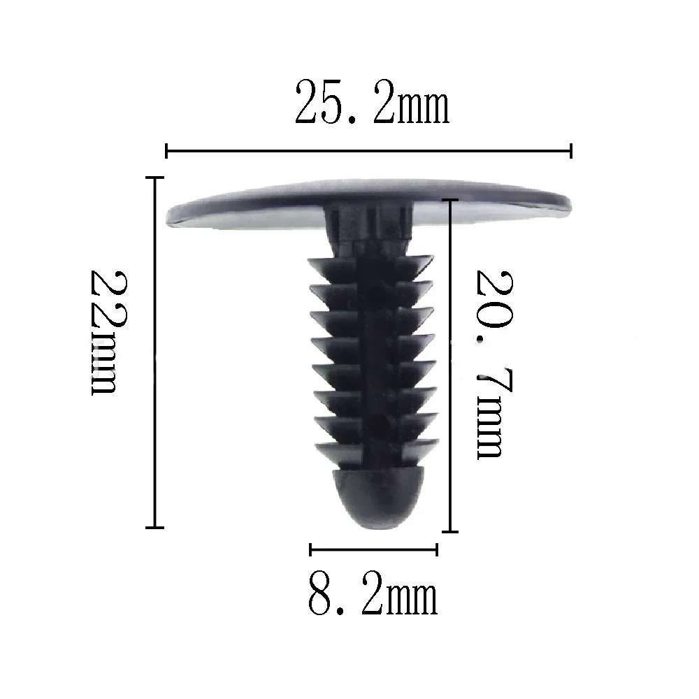 Clips de remache de sujeción Negro 8mm x 19mm x 25mm, sujetador automático de parachoques tipo empuje de plástico, 50 piezas.