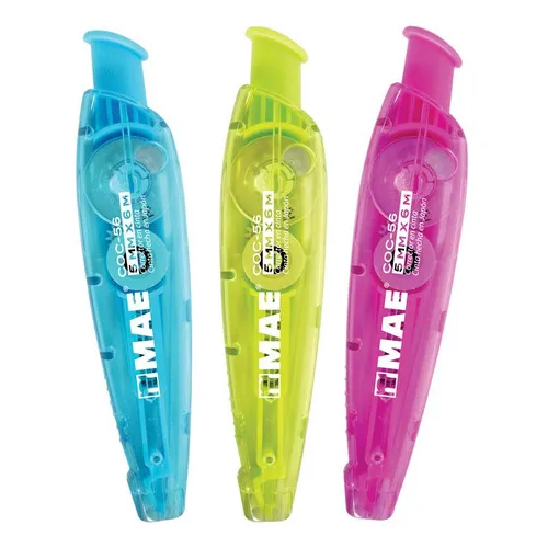 Este corrector de la reconocida marca MAE, es un producto de alta calidad que ofrece una cinta de 6 metros de largo, proporcionando una duración prolongada. Su formato en cinta retractil permite una corrección precisa, evitando manchas y permitiendo una corrección inmediata sin necesidad de esperar a que se seque.
