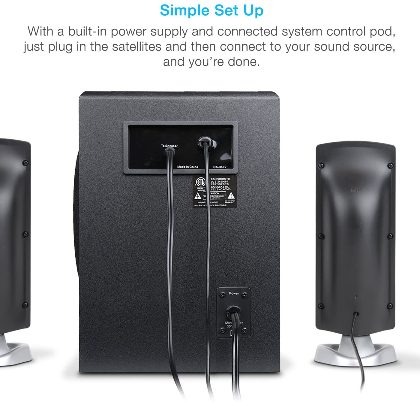 – ROOM FILLING SOUND: Este sistema de altavoces de subwoofer, impulsado por una fuente de alimentación interna optimizada acústicamente, ofrece 62 vatios de potencia máxima y 30 vatios RMS. Con este tipo de potencia, puede esperar un sonido increíble en cualquier nivel de volumen, llenando cualquier habitación grande en el hogar o la oficina.