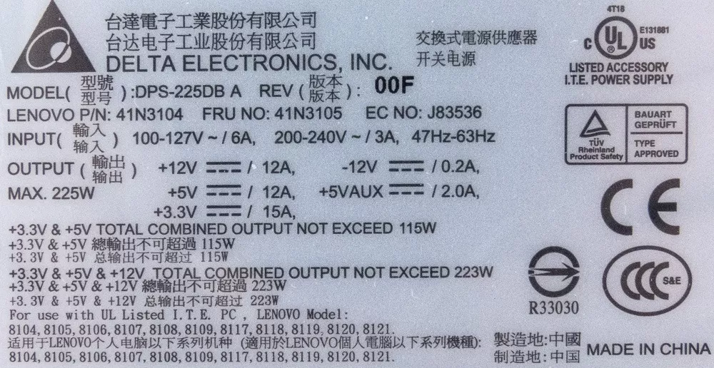 Fuente Lenovo Dps-225db 41A9735 Delta 225W USADA
