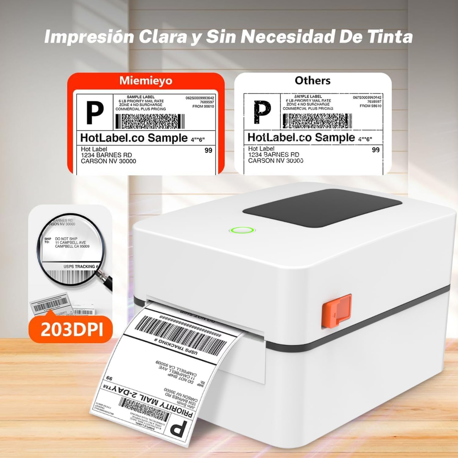 Impresión Térmica de Alta Calidad: Esta impresora térmica imprime etiquetas con una resolución de 203 DPI, garantizando resultados nítidos y profesionales. No necesita tinta ni tóner, lo que te ahorra dinero y molestias mientras proporciona etiquetas claras y duraderas