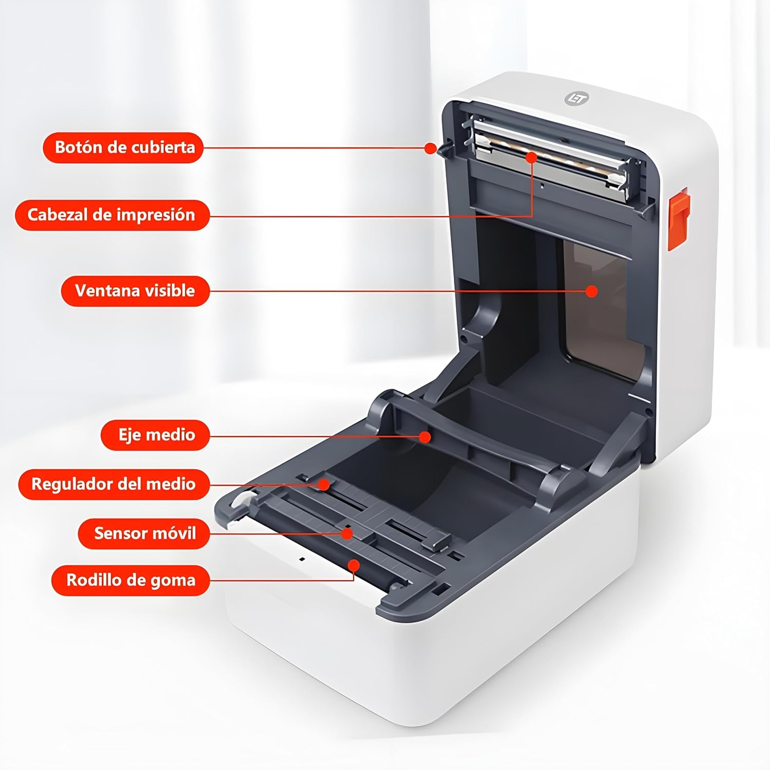 Compatibilidad con Varios Tamaños de Etiquetas: Imprime etiquetas de 1″ a 4.5″ de ancho. Es perfecta para etiquetas de envío 4×6, códigos de barras, etiquetas de precio y más. Ajusta fácilmente el tamaño y la orientación de las etiquetas a través de la aplicación “Open Label”