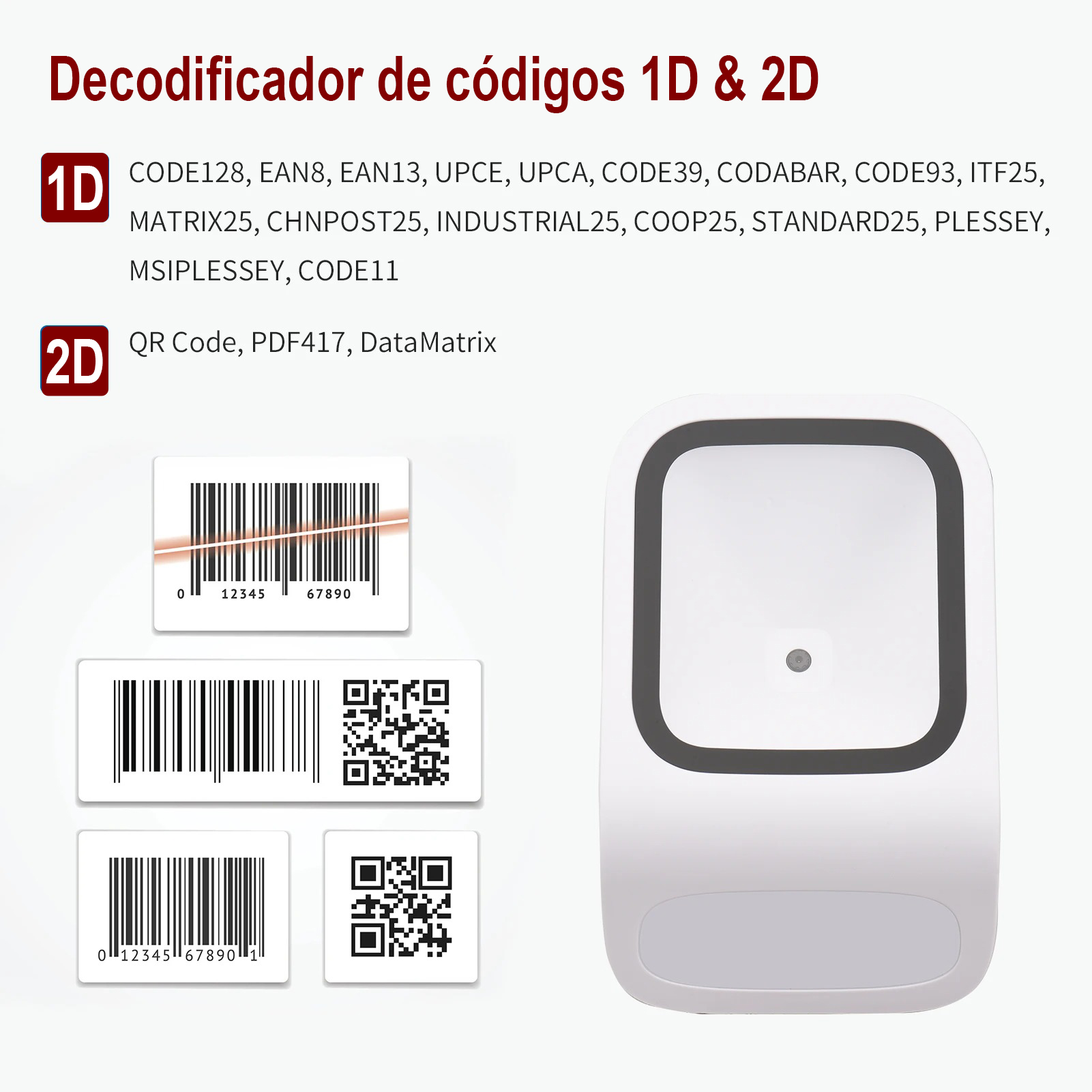 – Códigos admitidos: 1D, 2D y QR