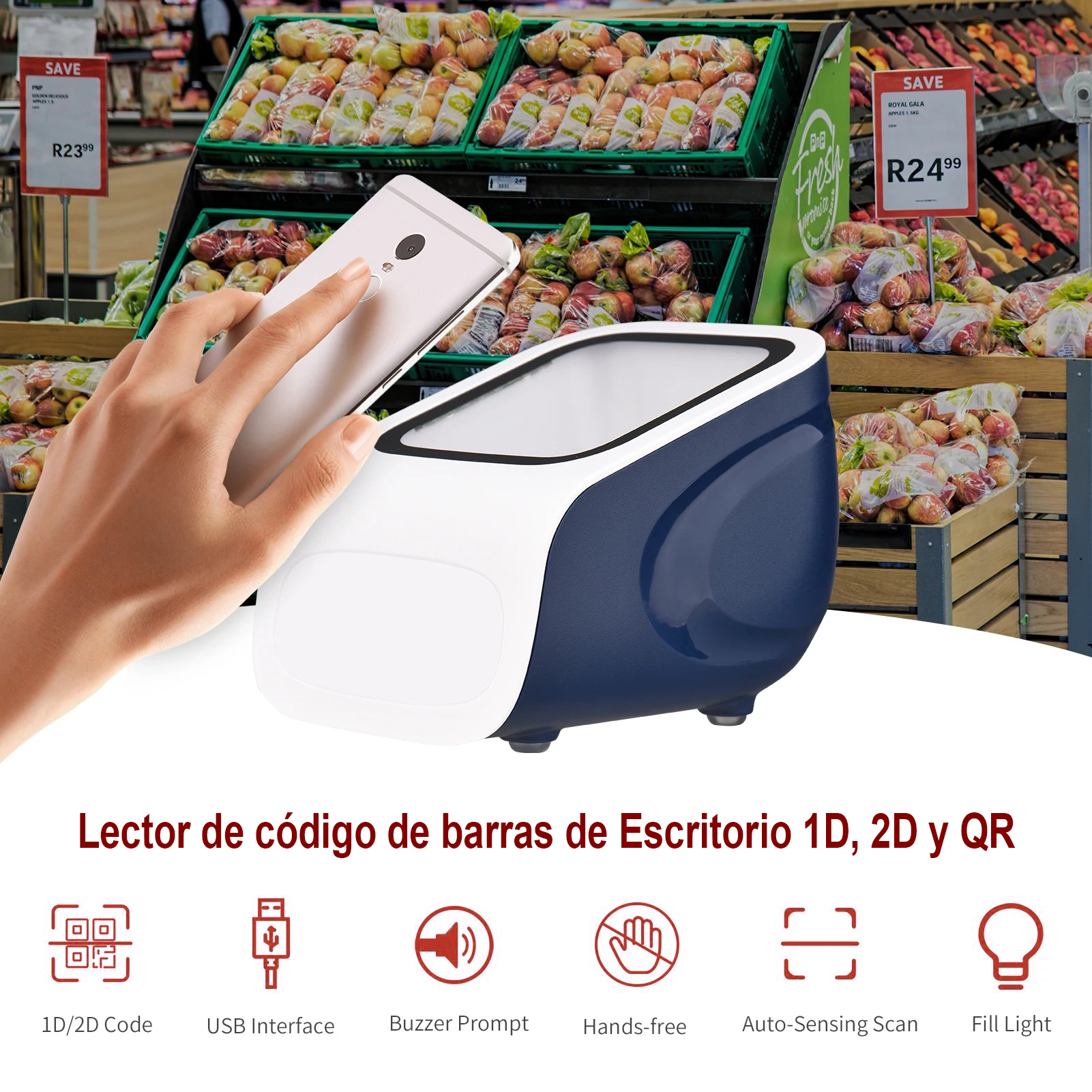 Lector código de barras automático Manos Libres USB – 1D 2D QR