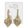 Secretos que guarda el crepúsculo se revelan en cada faceta de estos extraordinarios aretes. Como si el atardecer hubiera sido capturado en amatista, sus destellos danzan con el brillo de las luces nocturnas, creando una sinfonía que hipnotiza la mirada. Cada pieza es un prodigio de orfebrería en oro, donde corazones flotan delicadamente sobre huggies de altura. El cierre de bisagra, diseñado para máxima seguridad y confort, permite un ajuste perfecto que hace olvidar que los llevas puestos. La amatista, cortada con precisión matemática, despliega un espectáculo de luz con cada movimiento. Estos aretes elevarán instantáneamente cualquier atuendo a un nivel superior de sofisticación. Son perfectos tanto para una gala formal como para añadir un toque de distinción a tu outfit diario. Su diseño atemporal garantiza que serán tan relevantes hoy como dentro de décadas. Son esas joyas especiales que marcan un antes y un después en tu colección. Diseñados para la mujer que aprecia la exclusividad y busca piezas que reflejen su personalidad única. Esta creación irrepetible está destinada a convertirse en tu amuleto de la suerte y en el centro de todas las miradas.
