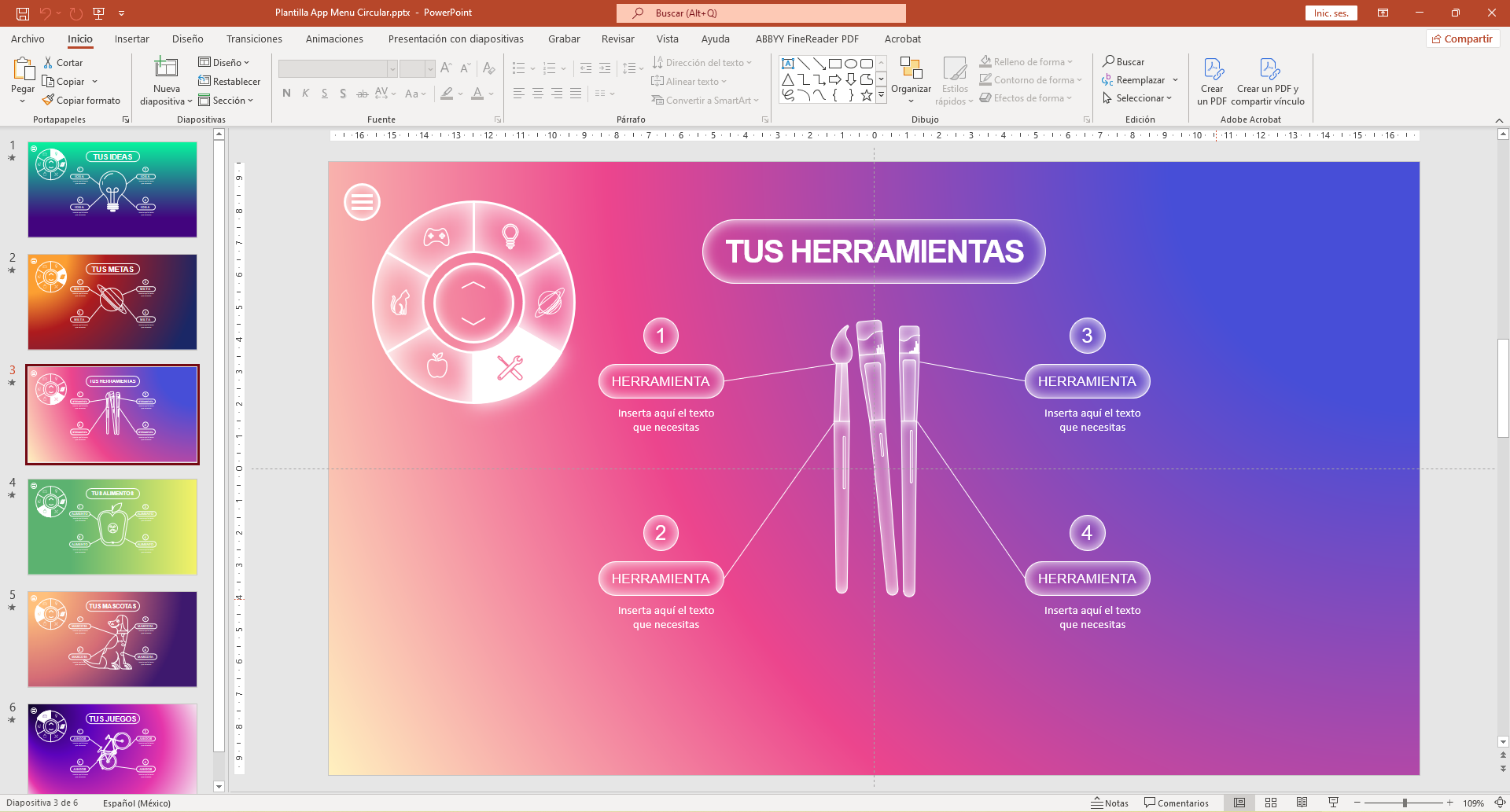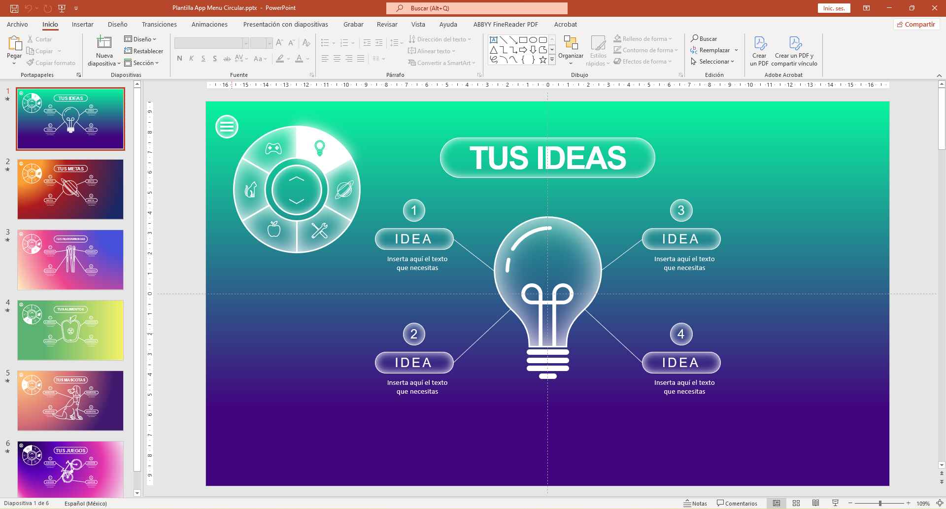 Plantilla Presentación Profesional tipo Aplicación con Menu Circular en PowerPoint Animada