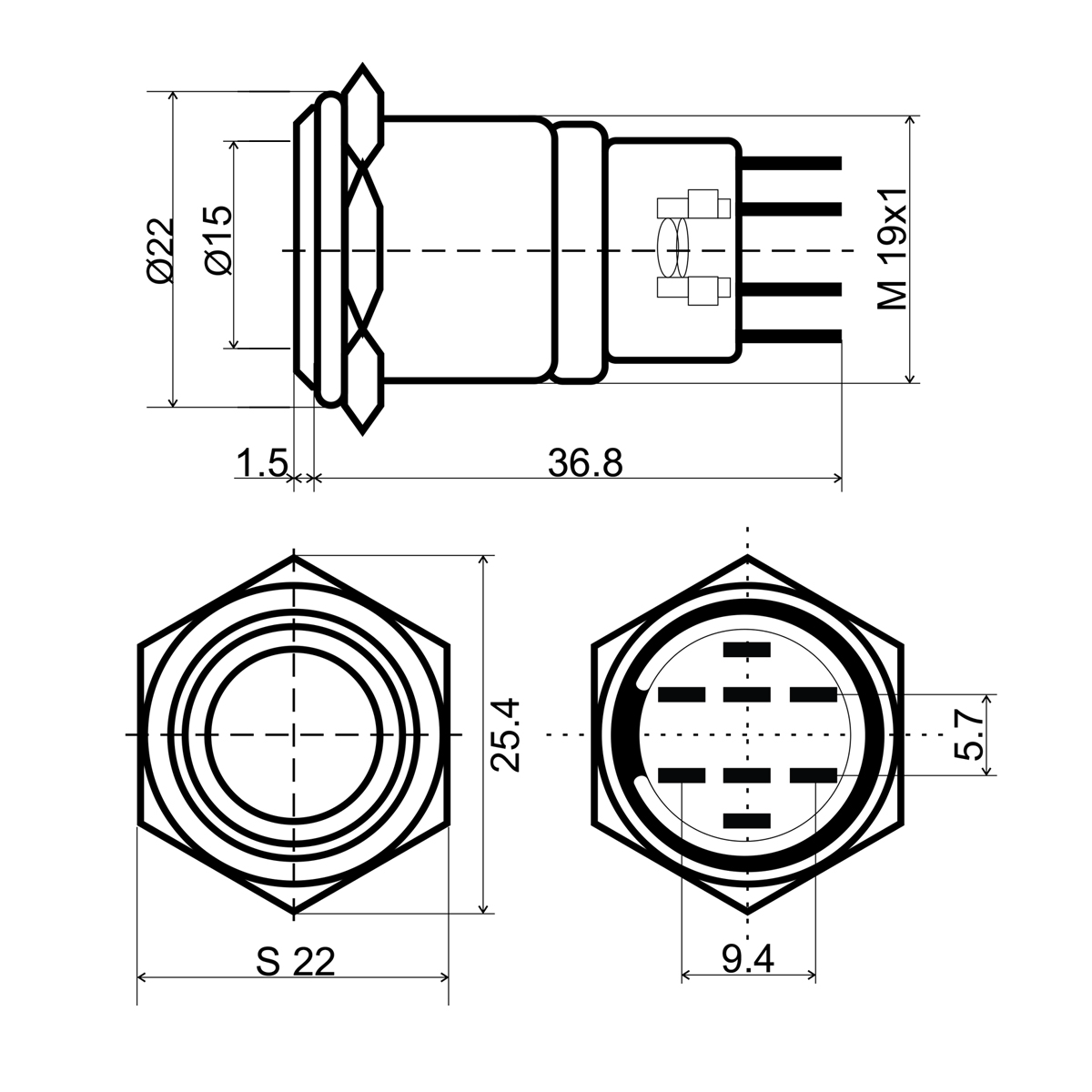 – Diámetro del botón: 17mm