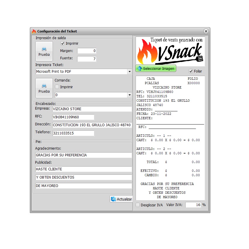 Configuración de tiquet de venta y comanda