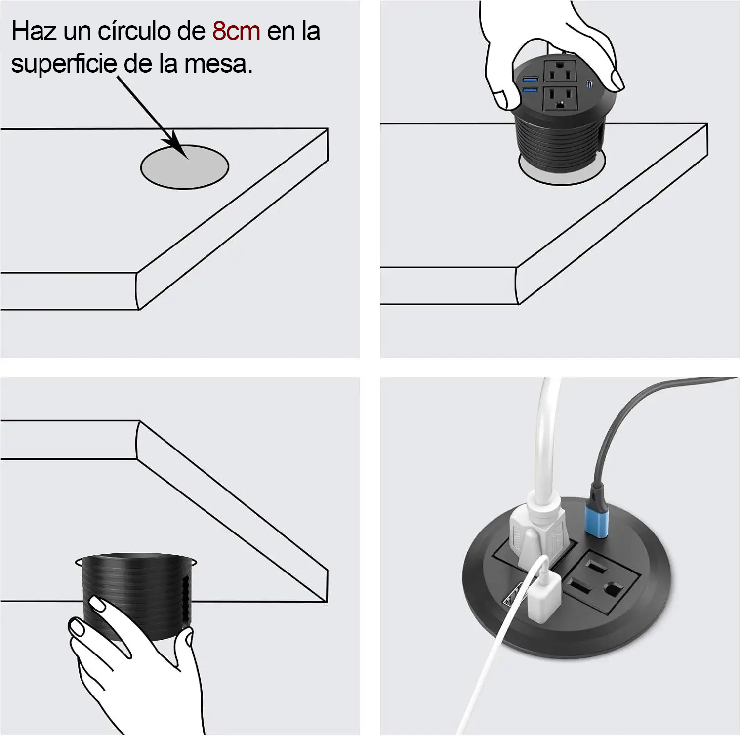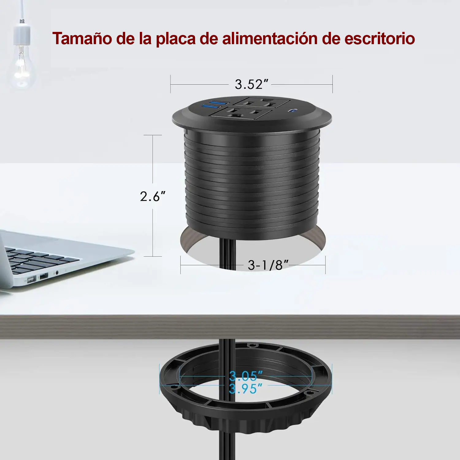 [FÁCIL DE INSTALAR]: Se adapta a un orificio de ojal estándar de 3-1/8 pulgadas (8cm): haz un orificio de 3-1/8 pulgadas (8cm) en la superficie de la Mesa o puedes usar el orificio del cable existente en tu escritorio. Luego puede insertar la arandela de sujeción.